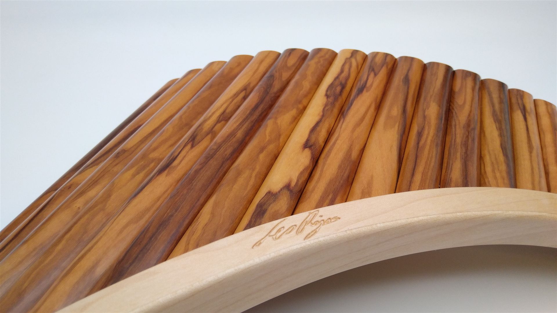 Auf Grundlage unserer Meisterpanflöte "Exzellent" , welche zu den besten handgefertigten Panflöten der Welt gehört, wurde diese Panflöte geschaffen. Die Meisterpanflöte "Exzellent" hat Leo Rojas schon in der bekannten ursprünglichen Ausführung begeistert. Durch die Verwendung von Olivenholz aus Süditalien (Salento) konnten wir eine bemerkenswerte Klangprojektion erreichen. Das hohe Alter dieser Olivenbäume bietet einen Härtegrad, der den Klang dieser Panflöte maßgeblich verbessert. Das Design, bei Panflöten eine völlig neue Linie, verändert das Bild handgefertigter Instrumente völlig. Den Schwerpunkt haben wir auf Innovation gelegt und konnten dadurch einen großen dynamischen Bereich schaffen, welcher der Tonwiedergabe einen kräftigen und strahlenden Klang mit nie dagewesenem Charme und unglaublicher Ausdruckskraft gibt.
