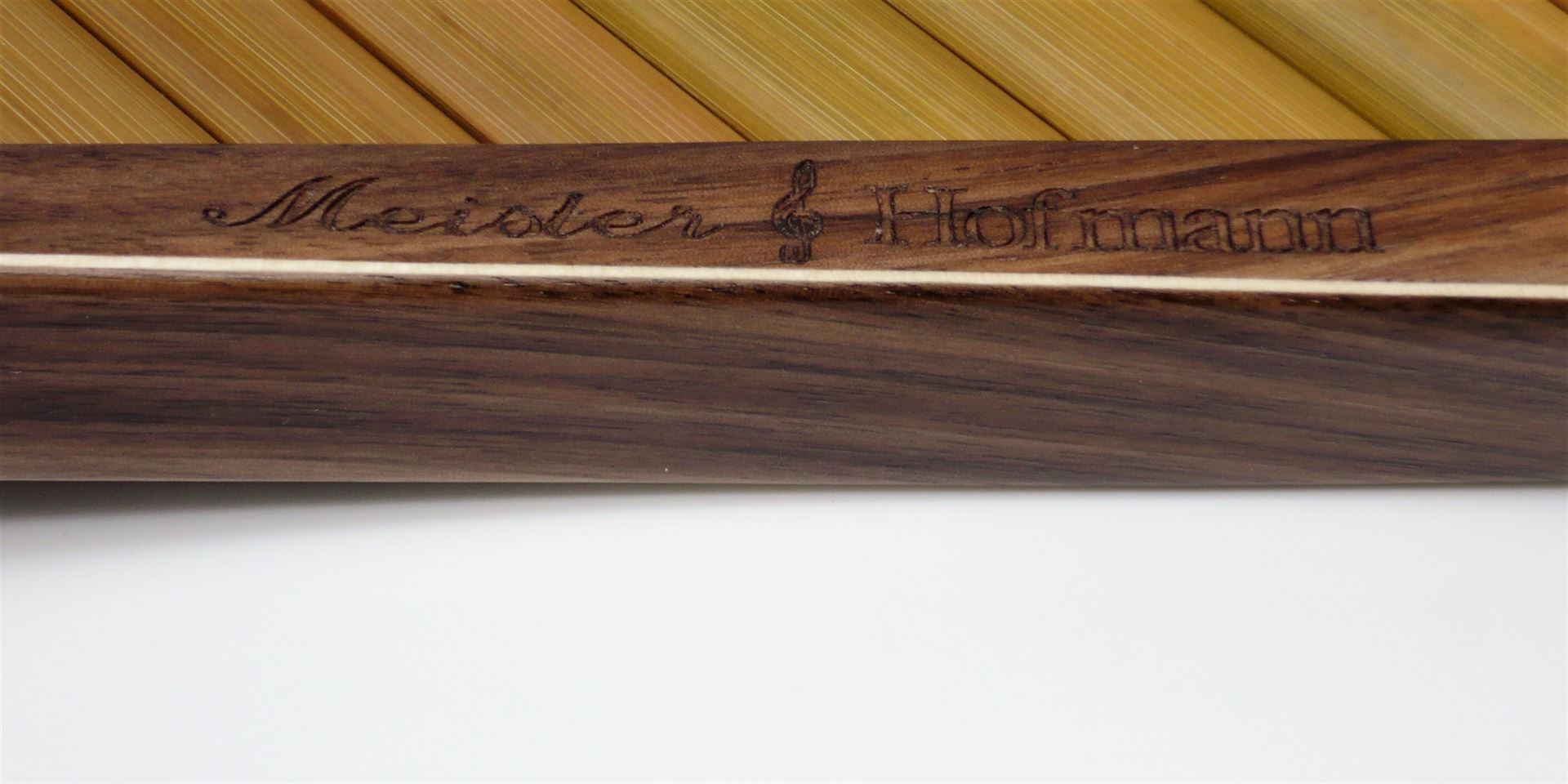 Unsere Meisterpanflöten bestechen durch ihre außergewöhnlich leichte Ansprache. Diese ist der besonderen und einzigartigen Behandlungsmethode zu verdanken, bei der die Innenseite der Panflöten Röhren durch ein Spezialverfahren geglättet und verhärtet werden.