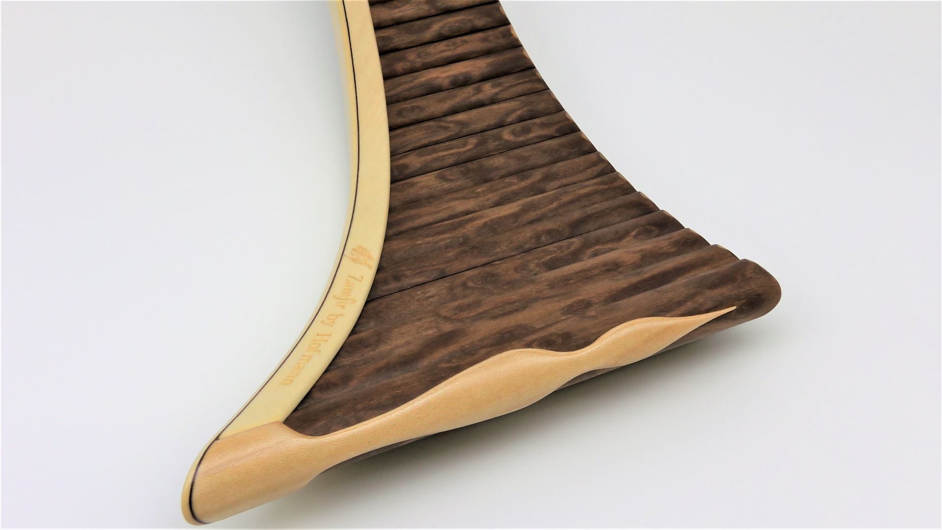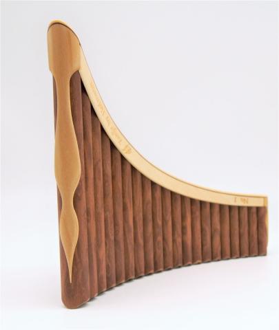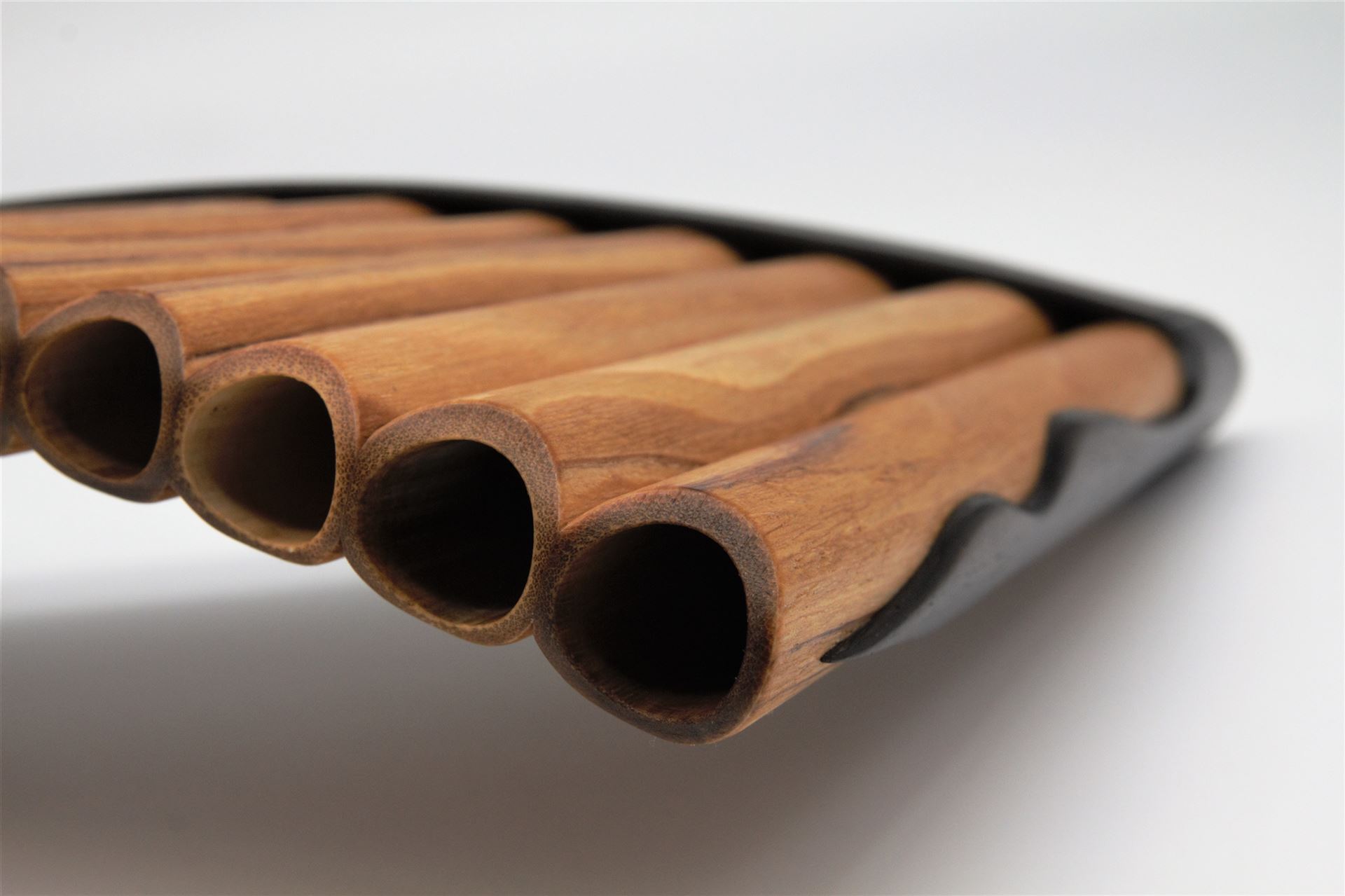 Bei der Meisterpanflöte Exzellent stehen zwei Designs zur Verfügung. Neben der Standard-Ausführung gibt es diese Panflöte auch mit Olivenholz in Kombination mit Zirikote, einer Variante der Ebenholz-Familie.
